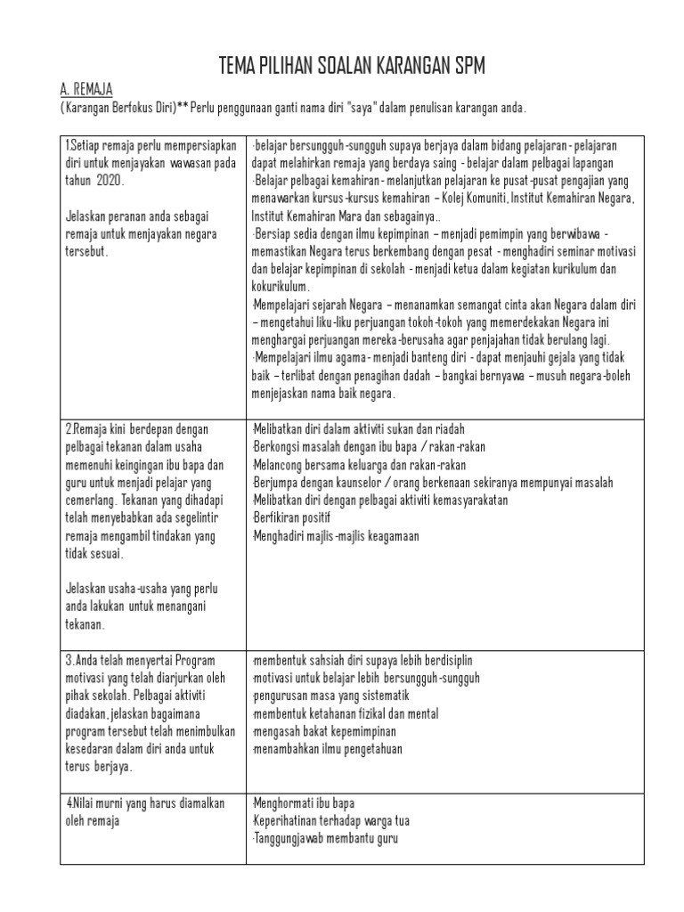 Tema Pilihan Soalan Karangan Spm Pdf