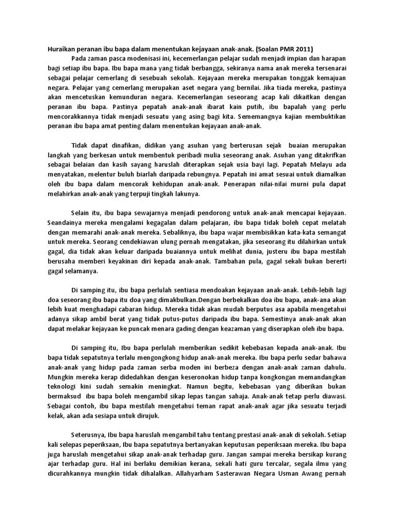 Huraikan pendapat anda tentang faktor-faktor kejayaan seseorang murid dalam pelajaran. 1 jam 30 minit Pilih satu daripada soalan di bawah dan tulis sebuah karangan yang panjangnya lebih. Belakangan ini soal pembinaan modal insan cemerlang adalah antara perkara yang menjadi agenda utama pembangunan negara.