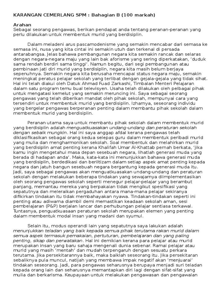 Karangan Cemerlang Spm Bhg B Peranan Untuk Membentuk Murid Yang Berdisiplin Pdf